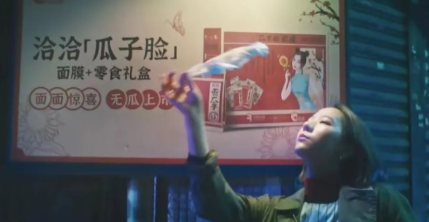 日前,洽洽瓜子和华熙生物联名推出了一款“瓜子脸面膜”,并斥资拍摄了视频广告展开宣传。三支广告短片以“沙雕”气质,将词语间组合形成的化学反应改编为“瓜学反应”,包括“雨女+瓜子=雨女无瓜”、“群众+瓜子=吃瓜群众”、“闺蜜+瓜子=顶瓜瓜”的话题。