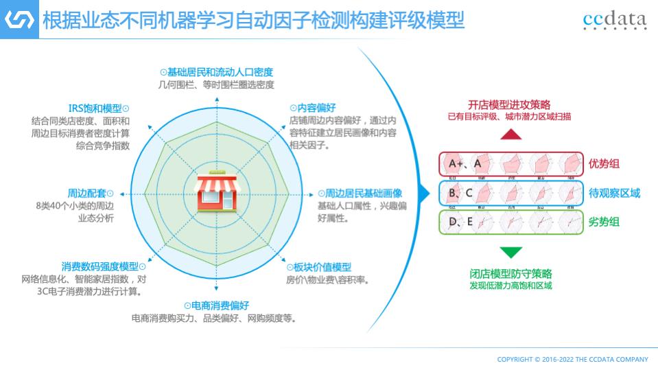 利⽤相关性机器学习解锁线下零售致胜密码, 关联竞争关系、品类甄选、潜⼒位置等。指导店铺的优胜劣汰,辅助企业管理者制定可持续的经营目标,及时发现运营过程中的偏差和问题。