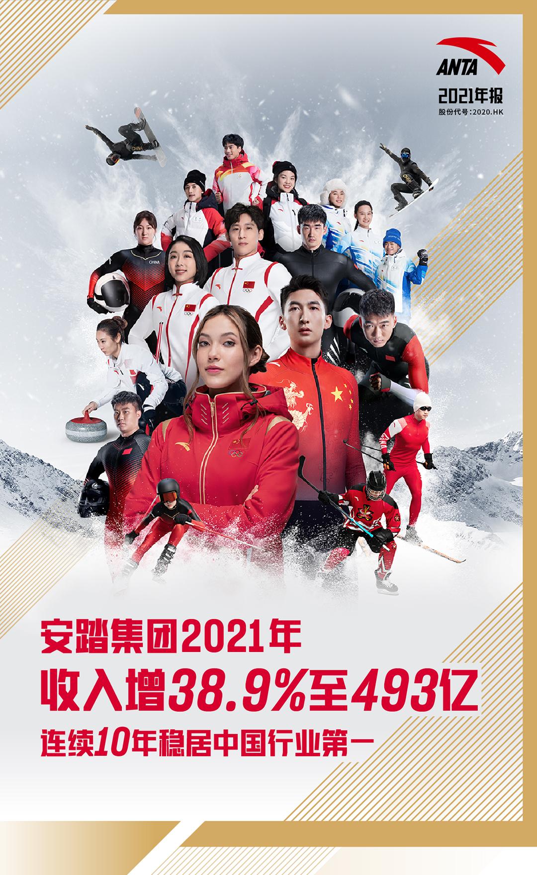 近日,安踏集团披露2021年全年业绩公告,集团全年收入同比增长38.9%至493.3亿元,逼近500亿关口,营收规模连续十年保持中国体育用品企业第一。安踏集团表示,业绩的增长主要受益于去年下半年“双奥”热度带来的品牌声量,以及数字化效率的提高。