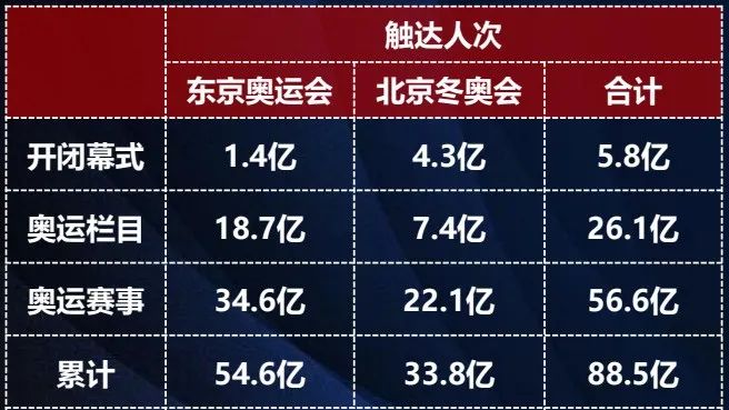 总台双奥报道不断刷新收视奇迹:东京奥运会通过总台全媒体平台收看东京奥运会的人次高达479亿次,创多项传播纪录;北京冬奥会跨媒体总触达人次达484.74亿,超百场赛事收视率破1%。