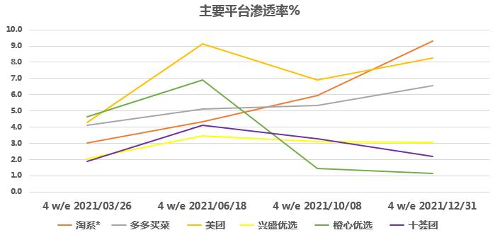 凯度消费者指数移动购物截图样组监测数据显示,社区团购的月渗透率从21年初的10%-15%快速攀升到年中的20%-25%区间之后就进入了一个相对稳定的平台期。