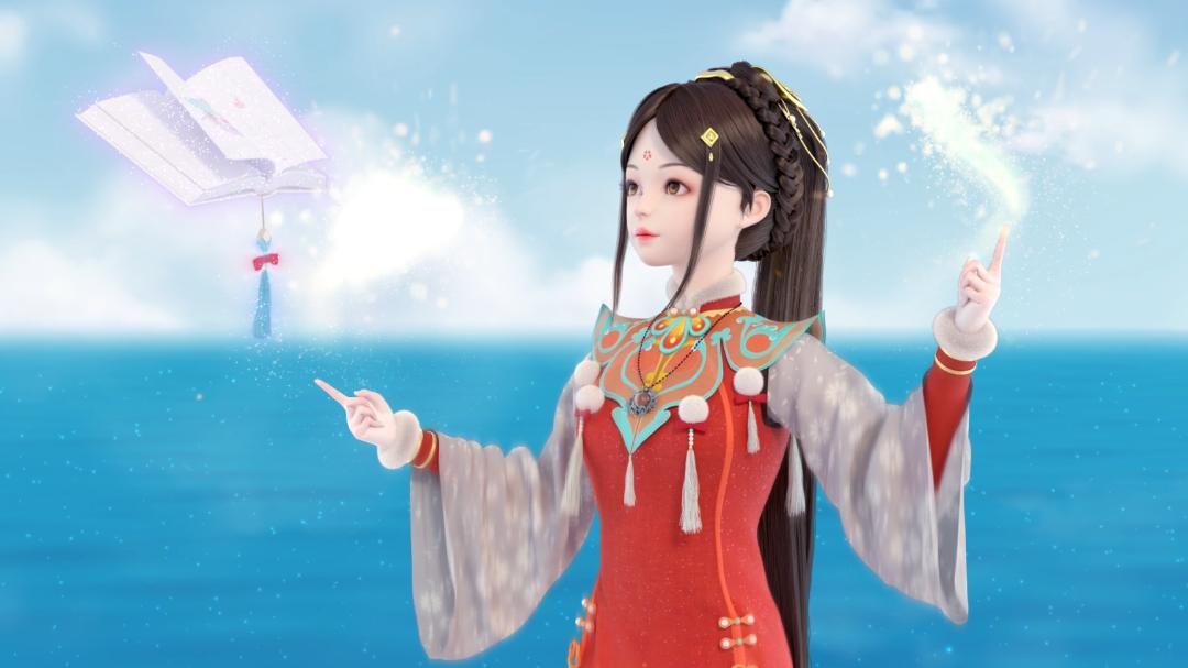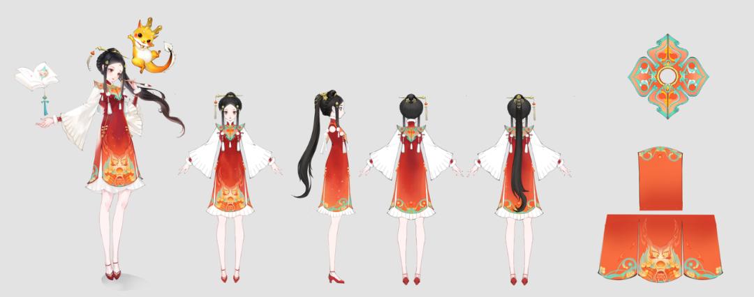 五糯糯身着一袭国风旗袍,加入了传统汉服云肩的设计,眉眼甜美可爱,裙摆上的龙纹更是暗示着她非同一般的“神秘身份”。