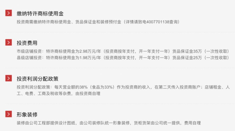 根据名创优品官网,加盟商想要开一家门店,需要支付三笔费用:特许商标使用金、货品保证金和装修预付金。