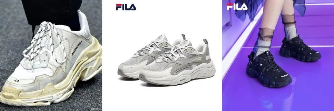 Fila继续扩张时尚版图,Fila Fusion是Filaz在2017年开设的全新子品牌,用街头文化和关注度较高的营销事件丰富品牌矩阵,该子品牌是 Fila 进军潮流圈的野心,Fila 热卖的几款鞋型“斐乐猫抓老爹鞋””斐乐火星跑步鞋”都是模仿当季明星产品巴黎世家老爹鞋的结果。