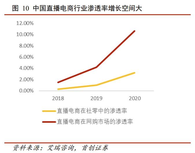 2020年,立足于数字经济,直播电商赛道走进爆发期,市场规模达到 1.2 万亿元,近三年复合增速高达220.5%,被写进《政府工作报告》。
