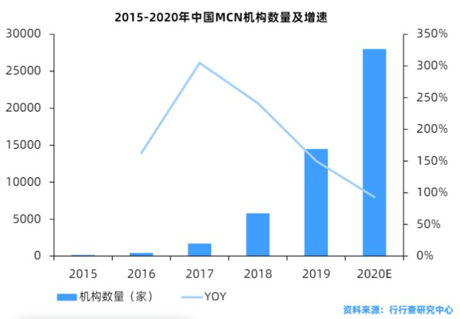 2015-2020年,随着红人经济的爆发式增长,MCN行业入局者也井喷式爆发,年均都保持在90% 以上的高速增长率。这种规模性的增长,让整个行业都遇到了个难题,人才梯队培养跟不上。红人+职业教育,是天下秀给出的有效解决方案。