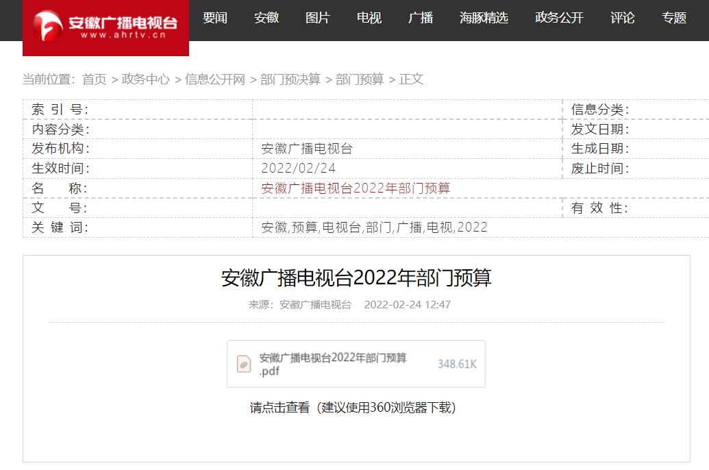 安徽广播电视台2022年财政拨款收支预算24210.6万元。