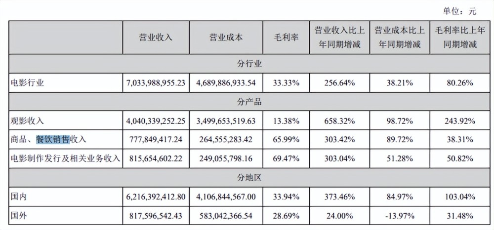 值得注意的是,在万达电影的主营业务中,相比于观影票房,商品、餐饮销售等非票房业务一直贡献了比较高的毛利率。