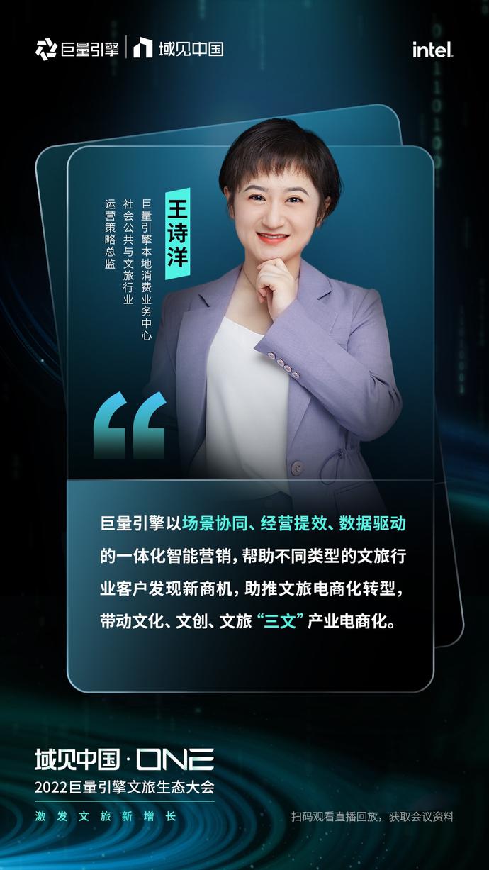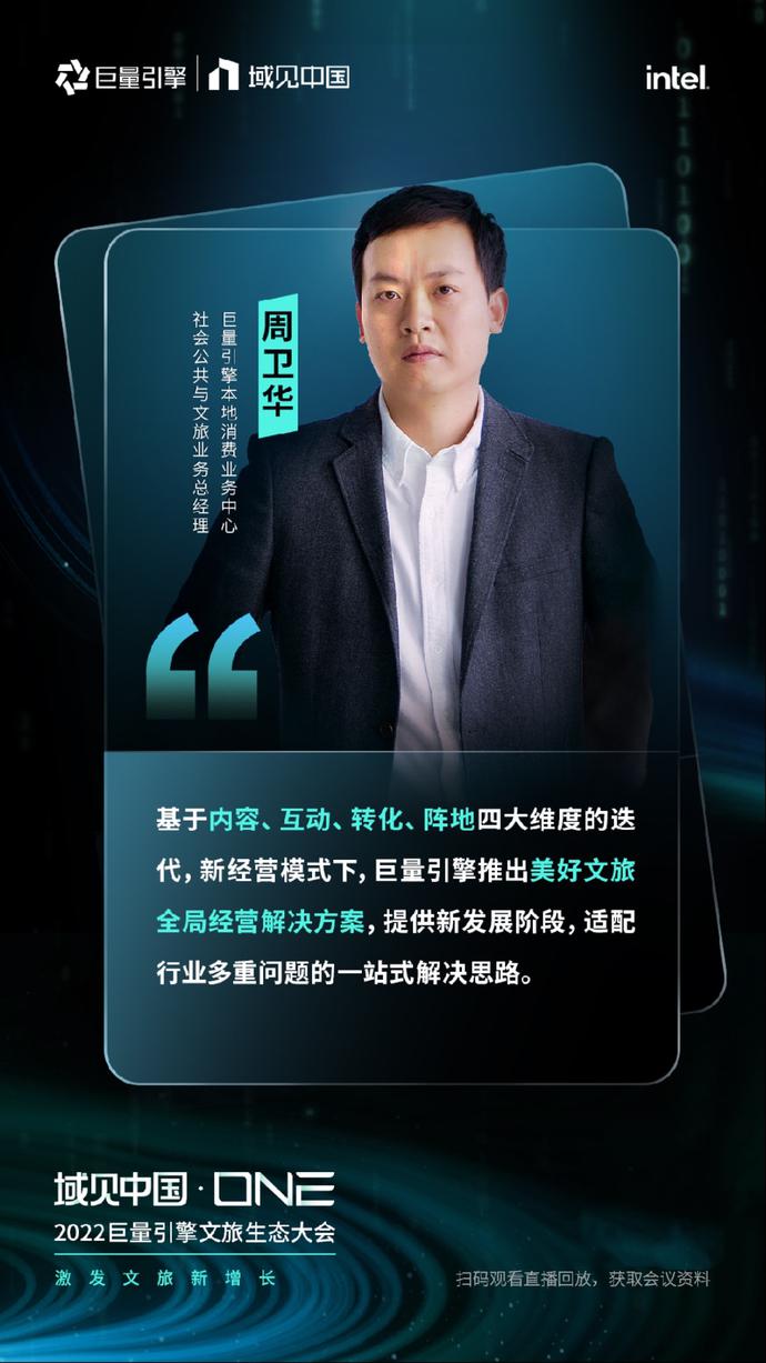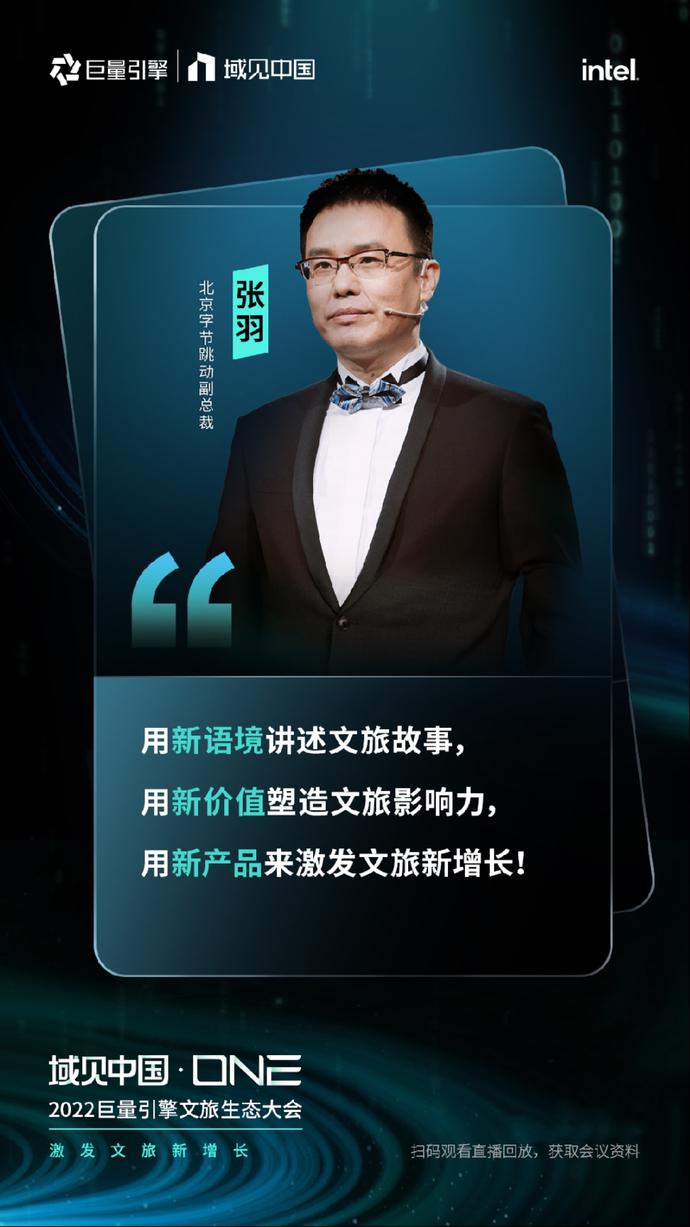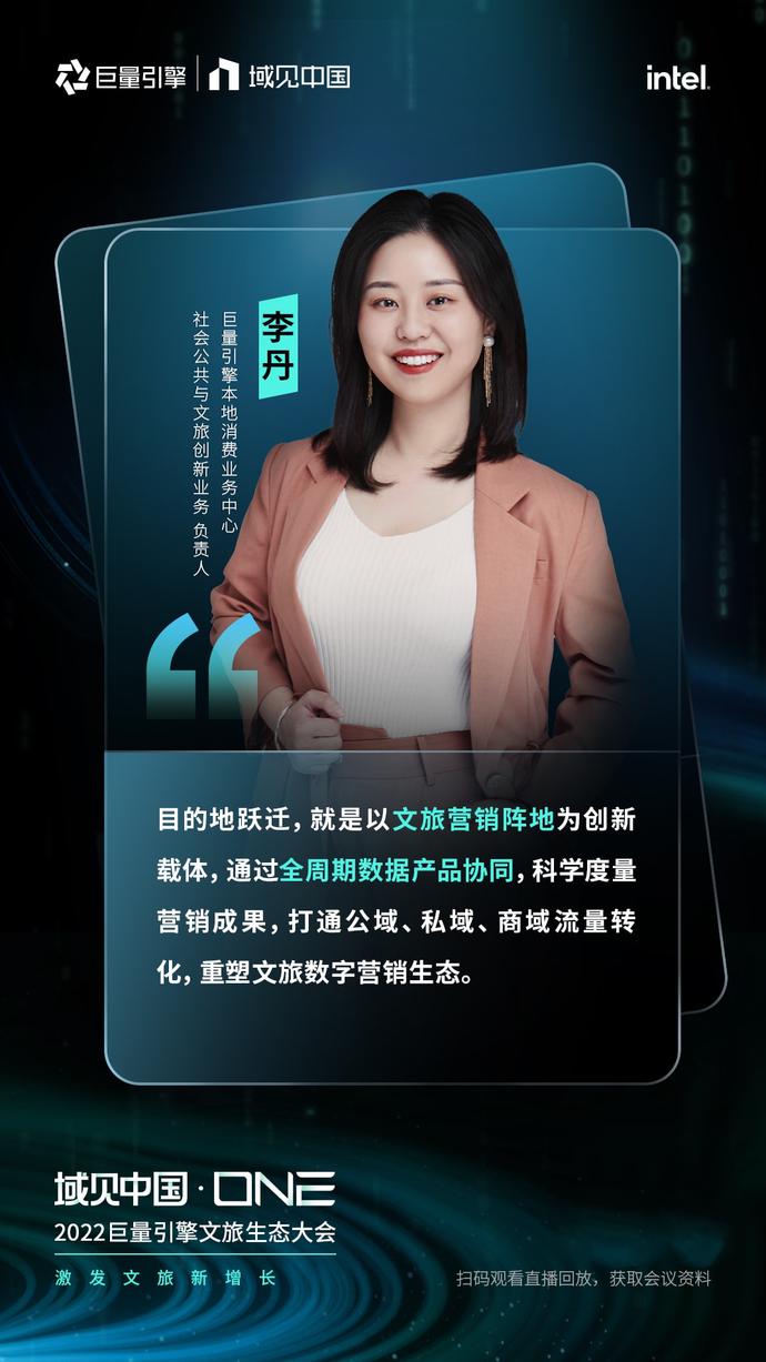 本次大会由中国旅游研究院指导,巨量引擎主办,Intel作为数字化独家合作伙伴,科幻生存游戏《代号:降临》虚拟人李星澜、杭州李未可科技有限公司虚拟人李未可作为智能科技合作伙伴。在全球文旅行业面临着格局重构的背景下,「域见中国·ONE」2022巨量引擎文旅生态大会聚焦文旅变革新形势,揭示了巨量引擎为帮助文旅企业创造长期价值而做出的新布局,围绕“1+4+1”,即1个全局经营解决方案,4个核心计划(IP计划、目的地跃迁计划、经营计划、电商计划),1个支撑生态,阐述了全场景、全周期、全链路、全转化的全新文旅生态,并联动生态伙伴共同探索2022年文旅生意新可能。
