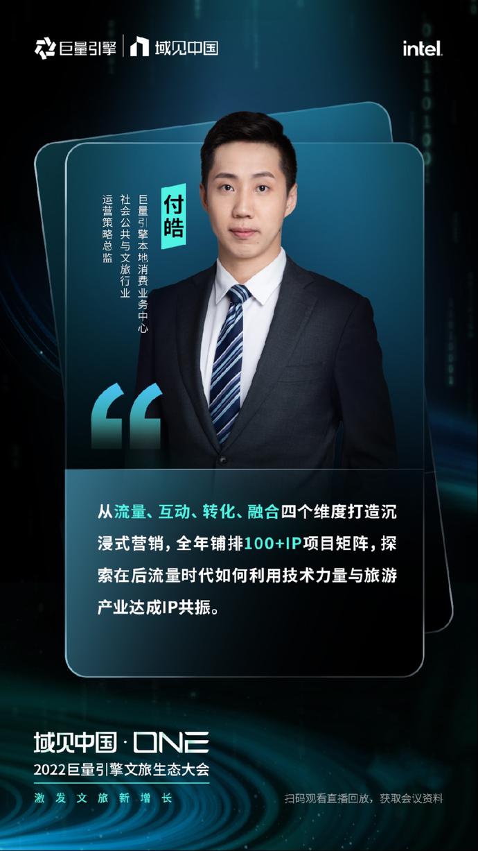 一、IP内容扩大触达范围,打造可持续经营模式:巨量引擎本地消费业务中心社会公共与文旅行业运营策略负责人付皓基于“美好文旅IP计划” 分享到:“2022年巨量引擎美好文旅IP计划推出100+个项目,通过文旅+流量、文旅+互动、文旅+转化、文旅+融合,一站适配文旅行业从流量到经营的全链路、全场景营销需求,如明星、达人、品牌等常态化种草内容,城市峰会、文化IP建设等,帮助景区类文旅企业持续输出优质内容,激活受众情感连接,增强经营外软实力,打造可持续的经营模式,以小投入撬动更大收益。”