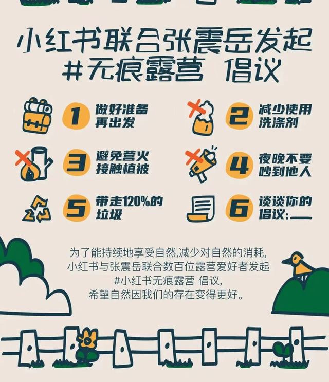 图为小红书联合张震岳及数百露营爱好者发起的无痕倡议书