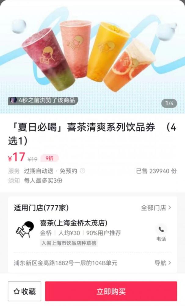 其实,喜茶正在抖音尝试这种做法。今年年初,喜茶在抖音推出团购销售,依靠微信生态内的社交裂变,换了一个场地。