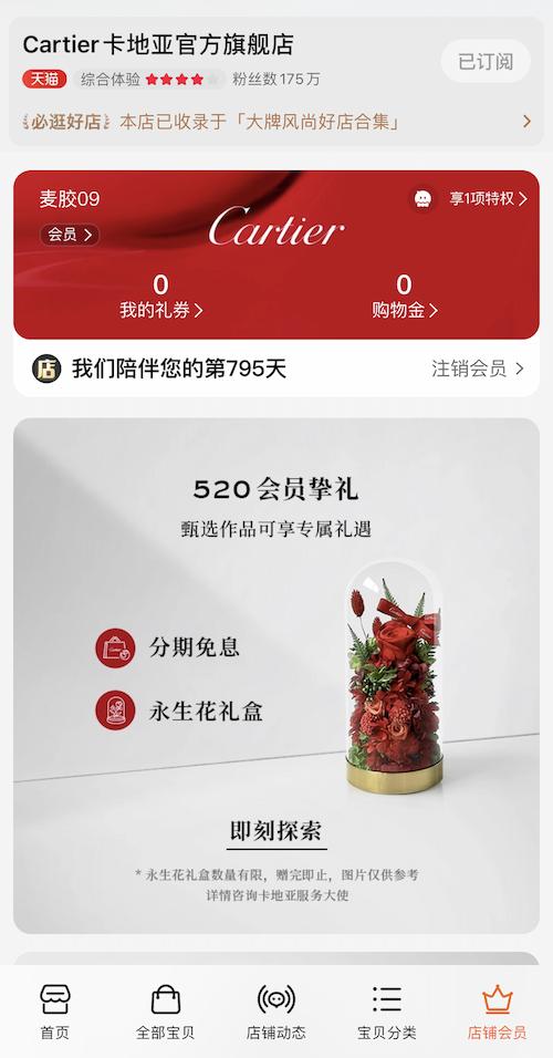 (卡地亚在520期间为天猫店铺会员提供永生花礼盒)
