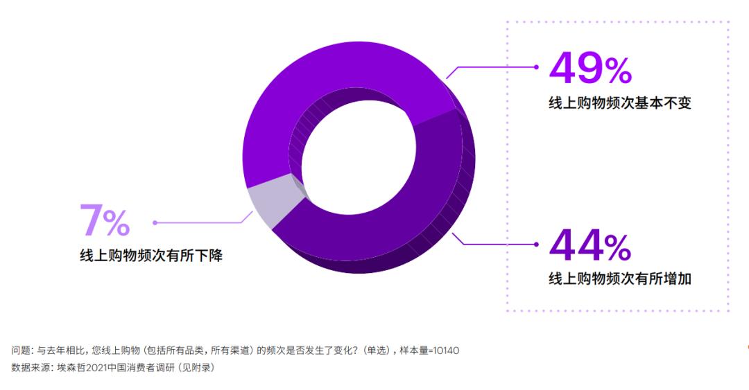 随着生活水平提升、可选服务增多,人们逐渐开始追求工作与生活的平衡,更加重视时间价值,愿意为便利付费。持这一观点的消费者较五年前增长了7个百分点,且收入越高意愿越强。这也推动了线上渠道的持续渗透和新型渠道的蓬勃发展。超过四成受访者在过去一年间提高了线上购物的频次,超过九成受访者至少尝试过一种新型渠道。