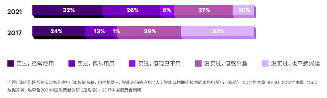 中国消费者尝试新事物的意愿强烈,对于数字技术的态度更加积极。从智能手机到智能家居,智能产品已经全面并深度渗透到人们的日常生活。疫情期间居家时间的延长,无疑进一步催生了消费者改善居住环境的需求。