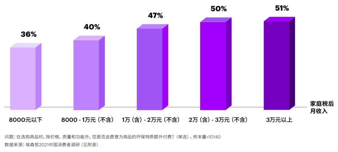 越来越多的中国消费者意识到可持续发展的重要性,愿意为环保付出精力和金钱。本次埃森哲调研显示,43%的受访者愿意为环保产品支付溢价,且收入水平越高,为环保特质付费的意愿越强。环保节能型产品销售快速增长。
