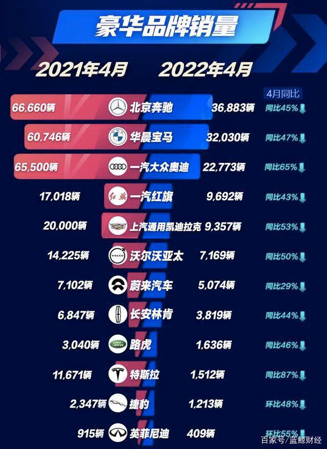 然而今年4月份,奥迪的销量却不尽人意,数据显示一汽-大众奥迪4月销量22773辆,同比下降65%,远远落后于同级别品牌的奔驰、宝马的36883辆和32030辆。