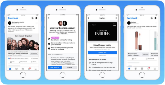 丝芙兰(Sephora)是少数几家内测该新产品的企业之一。用户将能够将其积分帐户(在本例中是 ‘Sephora Insider’)链接到其Facebook帐户。关联后,丝芙兰将能够提供个性化的优惠推送,并且可以直接在新闻摘要中突出显示用户购买后可以得到的补贴。