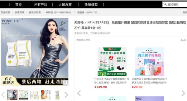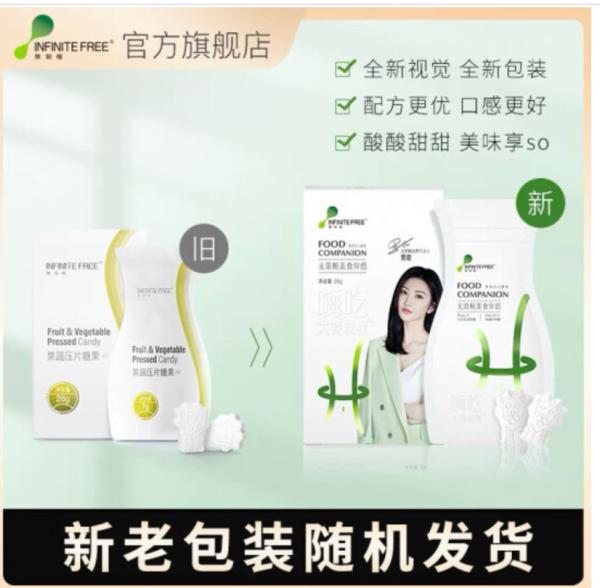 记者在某电商平台搜索关键词“无限畅果蔬片 景甜”发现,在无限畅官方旗舰店中,这款标称为“无限畅(INFINITEFREE) 果蔬压片糖果 景甜同款膳食纤维咀嚼酵素 饭后2粒嗨吃不怕 尊享装1盒*7粒”的产品已经显示“下架”