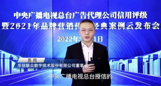 总台2022年3A 级广告代理公司华扬联众数字技术股份有限公司董事长苏同发表视频感言