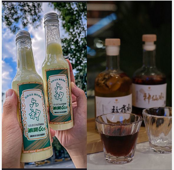 图/六神花露水奶茶(左)堂神仙熬夜水(右)