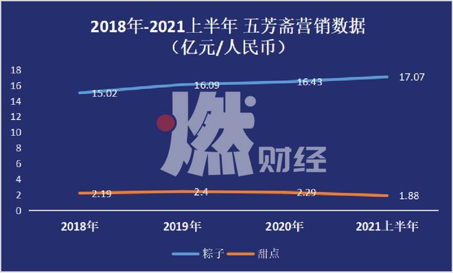 但其他品类,五芳斋表现非常一般。2018年至2021年上半年,蛋制品和糕点类产品营收从2.19亿元滑落至1.88亿元,跌幅为14.15%。