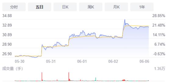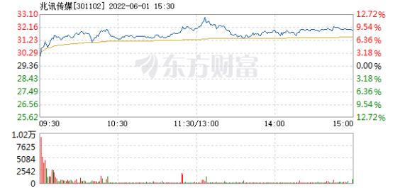 5月30日宣布投资户外户外裸眼3D,6月1日兆讯传媒盘中快速上涨,5分钟内涨幅超过2%,截至当日9点30分,报30.69元,成交3054.56万元,换手率2.34%。