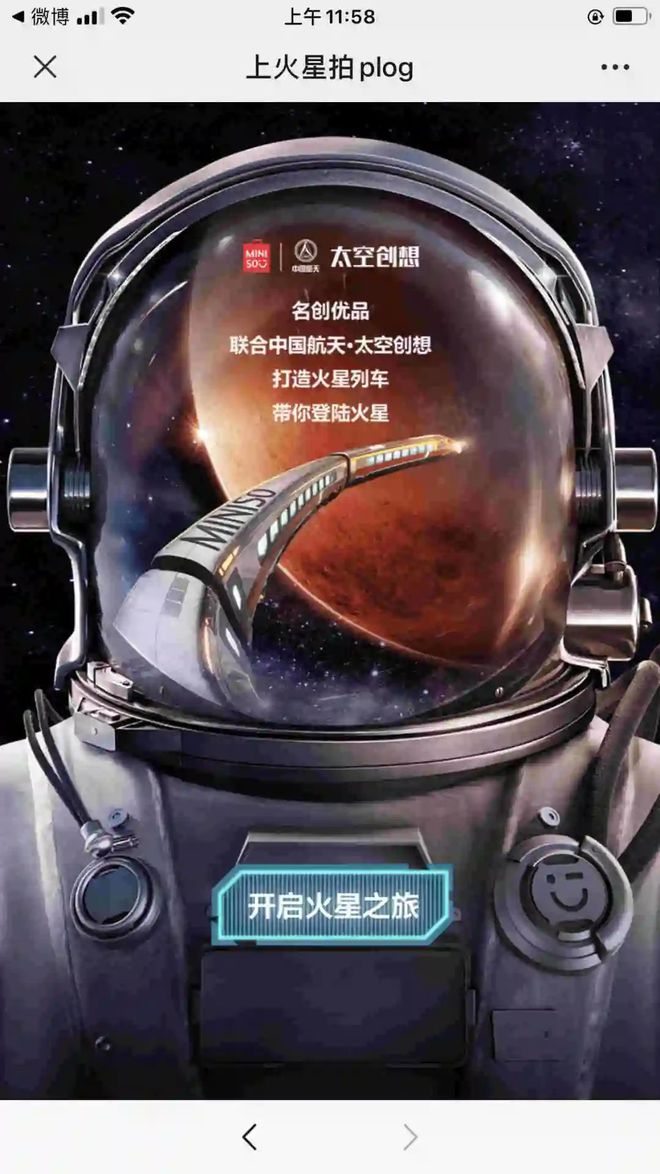 交通场景的曝光互动的同时,名创优品还在线上进行了H5互动,邀请用户一同在火星中留下自己的足迹。