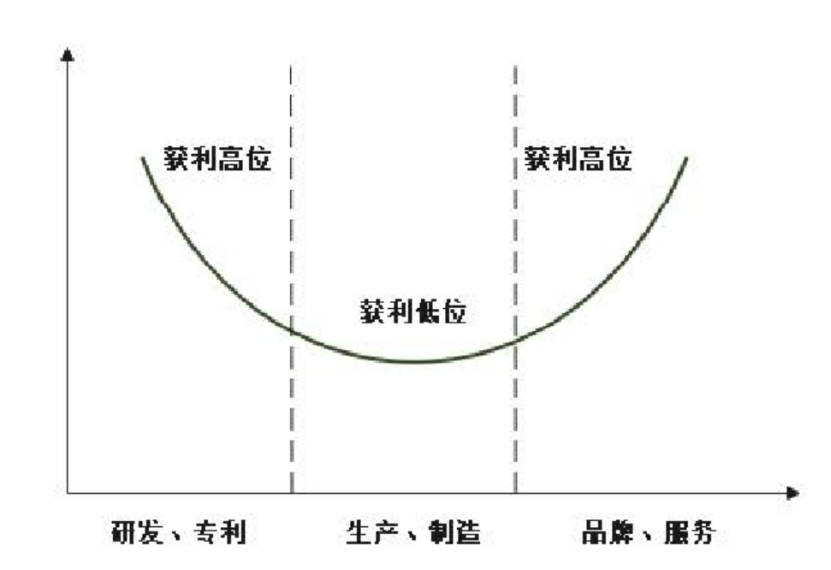 这是基于微笑曲线理论的,良好的走向应该是这样:左端加强研发,右端加强以客户为导向,注重营销和服务,产出高附加值的产品和服务才能具有较高的盈利潜力,确保公司可持续经营。