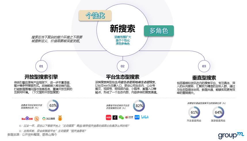 你对搜索的认知还停留在传统搜索引擎吗?其实各平台都已积极布局搜索入口,加速商业化进程。搜索需要被重新定义,它不只是一个“搜索框”,它正影响消费者的心,承担“激活”消费者转化的重要角色。