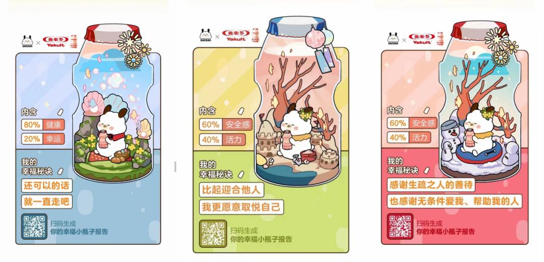随后,小羊驼三三和养乐多更结合年轻人喜爱的盲盒文化,以条漫最后的「幸福小瓶子」为原型,推出了限量款主题盲盒「三三的小幸福」,将营销话题再度拉向顶峰。