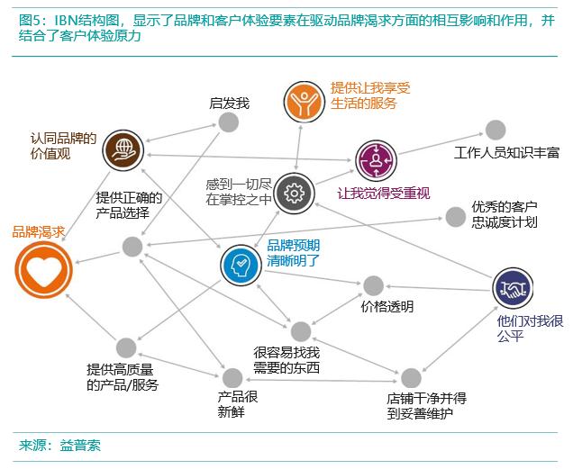 IBN驱动因素分析将品牌形象表达、客户体验要素和客户体验原力结合在一起,帮助客户建立强大的品牌客户关系,并确定各关键途径的优先级,同时强调了品牌和客户体验之间存在的相互关系。