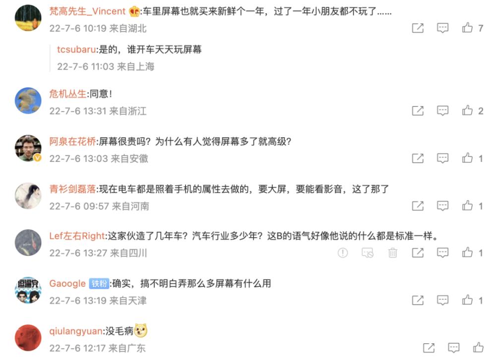 实际上,车载大屏的发展一直让很多汽车死忠粉不能接受。