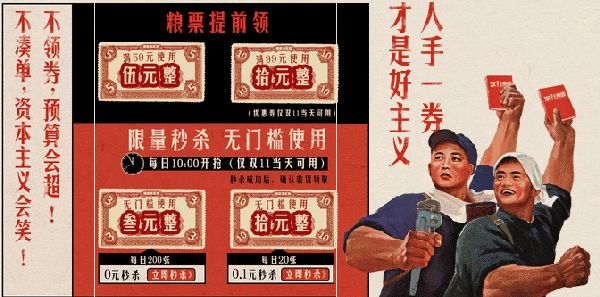 怀旧元素比比皆是,具有时代记忆感的元素,如弹弓、铁环、石磨、粮票、收音机、黑白电视机、大喇叭、大字报标语等等 ,这些具有明显时代特色的产品,在一代人心中留下了深深的烙印,品牌想要吸引不同的受众群体,就可以将极具时代记忆感的元素与品牌融合,唤起用户的共鸣。