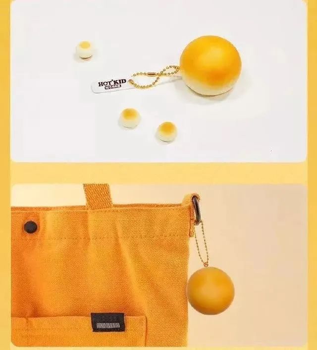 除了盲盒,还有“软软捏”系列周边产品,美味的小零食集体变身仿真周边,做成钥匙扣萌萌哒!