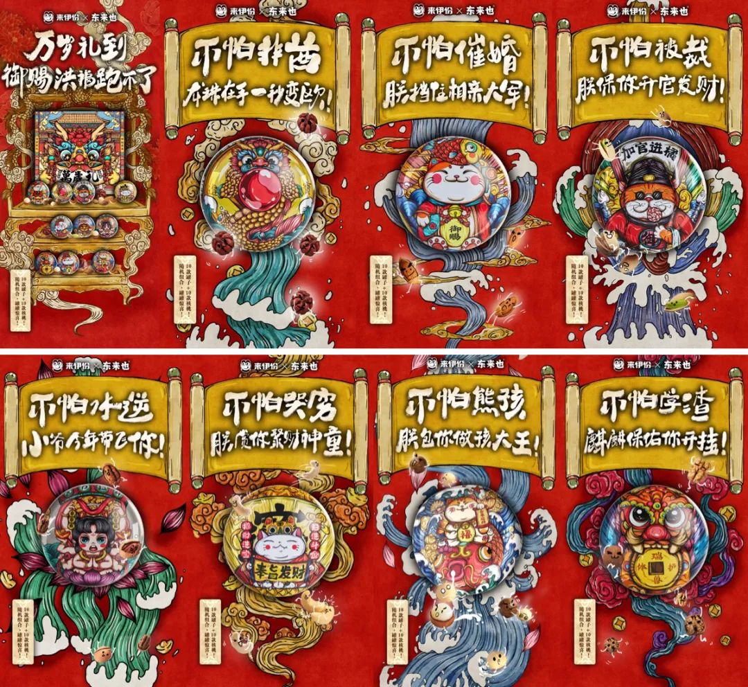 在12月30日,“主板零食第一股”来伊份联合国潮设计IP东来也推出万岁礼盲盒。这款极具中国味的年货礼盒,共有10种全新设计的国潮零食罐,每个礼盒随机装有4个,融入时下流行的“盲盒玩法”,将引领新年礼盒的一股新潮流。
