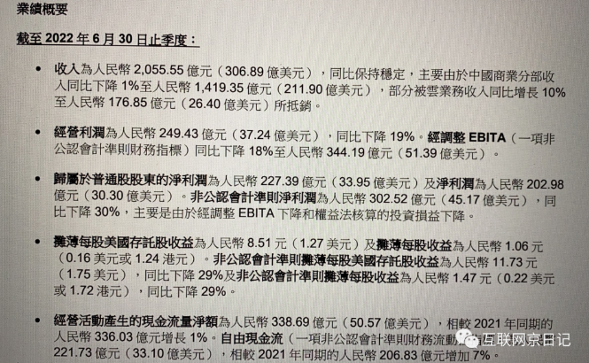 颇为令人意外的是,阿里巴巴的核心基本盘中国商业部分收入竟然同比下降1%至1419.35亿元人民币。