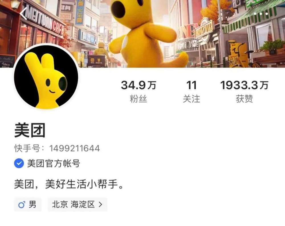 美团在快手的官方账号,图/快手App