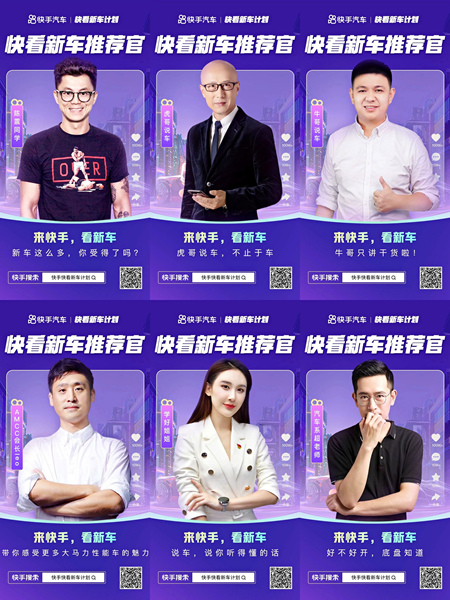 在专业层面,快手整合站内外汽车头部短视频作者及行业资深媒体作者,作为快看新车推荐官为“快看新车计划”发声,其中包括虎哥说车、猴哥说车、二哥说车等短视频汽车头部达人,以及韩路聊车、陈震同学等行业资深媒体作者,一方面依托快手平台丰富且完善的汽车内容生态,通过“大咖说新车”说车评车,保证内容输出的品质感和专业性;另一方面通过“跨界大咖看新车”看车选车,将复杂专业的内容简单通俗化,拉进产品与消费者距离感,赢得用户信任,直接促单交易。
