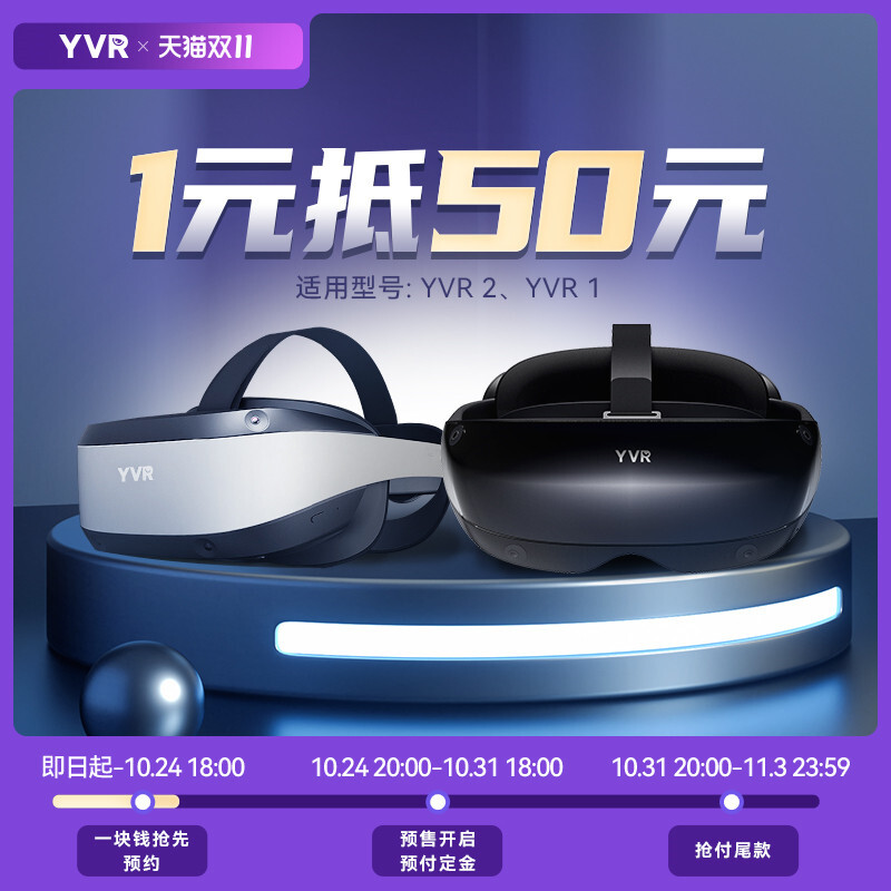当前,YVR双十一已火热开启,感兴趣的用户可在各电商平台搜索“YVR”进店参与活动,抢先锁定YVR 双11预约专属福利。YVR全系产品均参与本次双十一活动,包括YVR 1、YVR 2(128G/256G)以及YVR 2双11限量版。