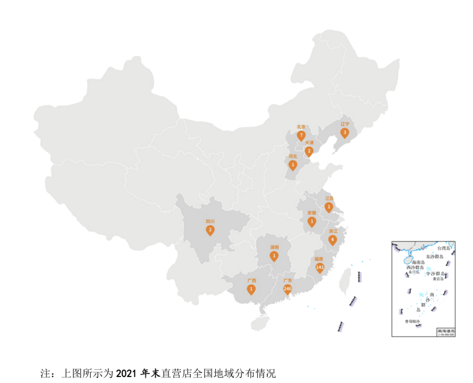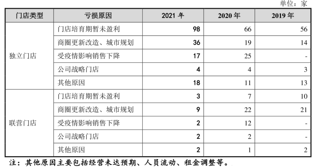 ”况且不仅仅是八马茶业自身,其加盟商的库存也在增加,“这些数据反映的是,可能存在压货给供应商从而提高自身收入的行为。”该投资人谈到。最后,无论是加盟店还是直营店,八马茶业的门店可持续盈利能力都还有待考量。一方面,加盟店尽管贡献了大部分收入,却是靠门店数量取胜。八马茶业招股书显示,2021年,其线下渠道中,加盟店营收占比为51.5%,线下直营店占比为27.23%。前者营收约为后者的2倍;但实际加盟店和直营店的门店数量,却并不是2倍的关系。报告期内,八马茶业的加盟店为2300多家,直营店数量为400多家。前者约为后者的6倍。这说明加盟店模式的毛利远不如直营店模式,营收贡献主要靠“量”取胜。实际也确实如此:报告期内,直营店的毛利率均超过70%,而加盟店毛利始终在40%左右徘徊。另一方面,直营门店的情况也并不乐观。从今年4月份八马茶业披露的招股书中,笔者发现,八马茶业2021年361家直营独立门店,其中有173家是亏损的。公司在招股书里称:独立门店一般回本周期约为2-3年。那么2019年的新设立门店,理应在2021逐步成熟了,实际上并没有。因为从图里可以看到,门店培育期暂未盈利的门店数一直处于较高水平。
