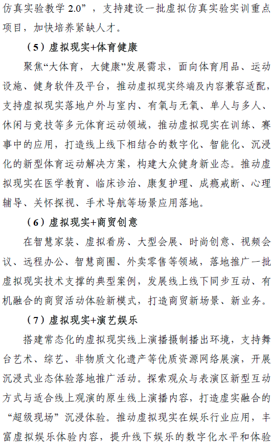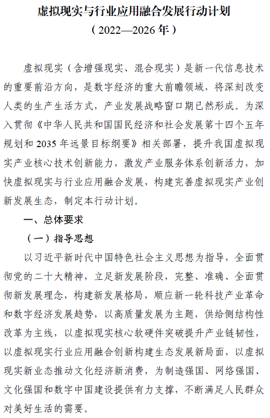 《虚拟现实与行业应用融合发展行动计划(2022—2026年)》全文如下: