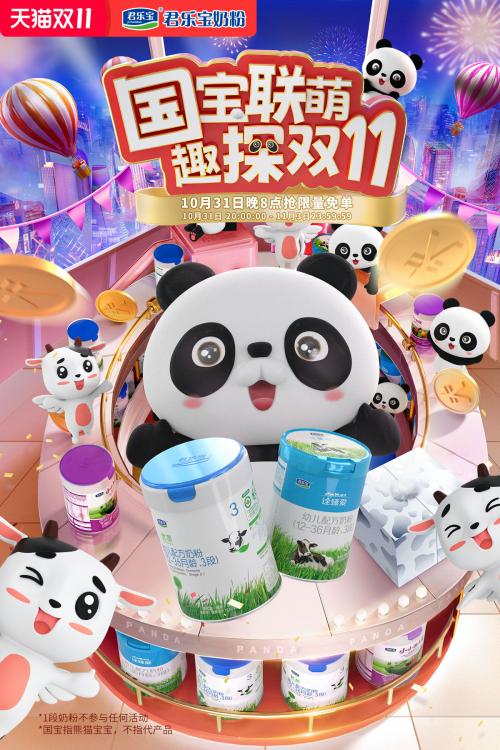 君乐宝奶粉双11全新形象,组建“国宝联萌”趣探双11