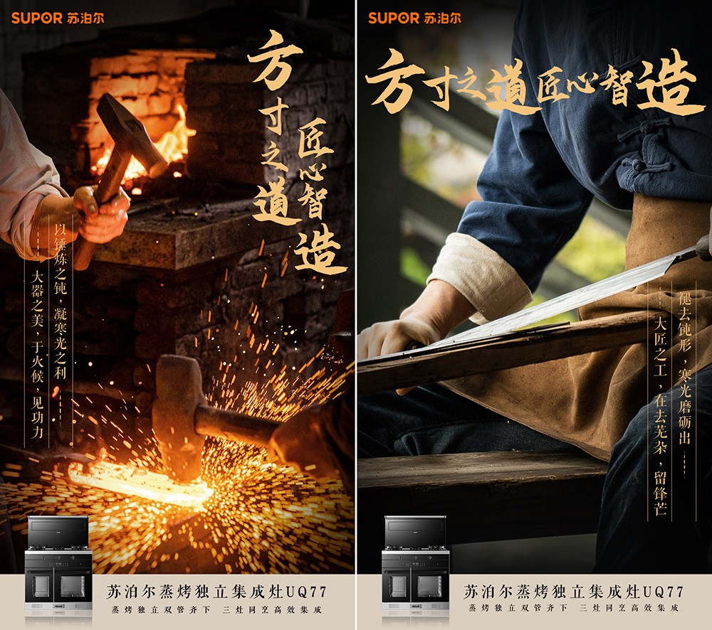 苏泊尔大家电匠心营销,从蕴含着#方寸之道匠心智造#的龙泉宝剑非遗海报开始,正式拉开了品牌文化营销战的序幕。将品牌形象与非遗文化进行强绑定,打下匠心文化基调。