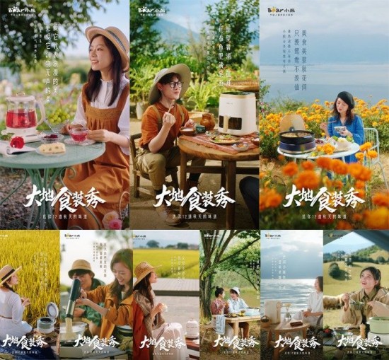 “好看的皮囊千篇一律,有趣的灵魂万里挑一。”相较于传统的产品背书,小熊电器的「大地食装秀」更为灵动有趣,在大自然中把系列产品变成一道道秋天的味道,让产品成为第二主角,不仅让产品多了一份浪漫的烟火气,更是将人与场景、人与产品的关系有机融合,触发沉浸式的参与和互动感,在目标消费人群中形成强有力的品牌认知,玩出了品牌传播新的高度。