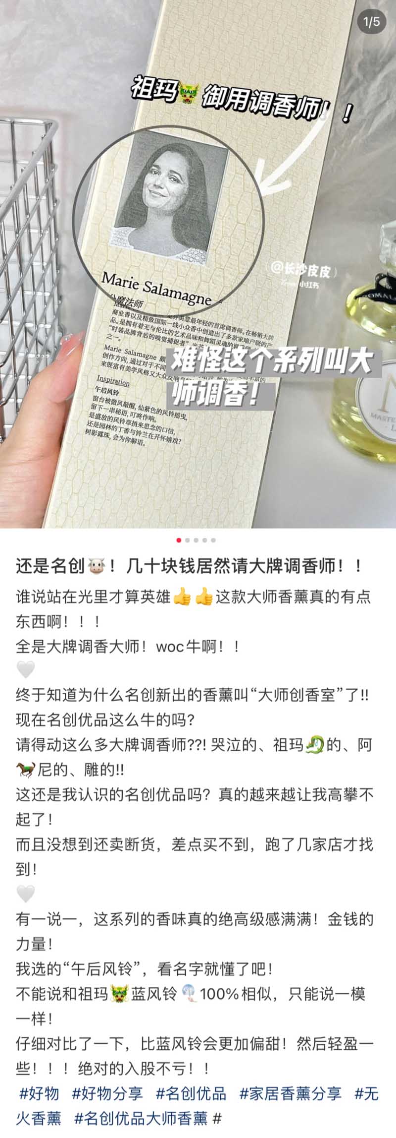 决定高品质香薰的几大因素有:香精、调香师和技术。首先,名创优品凭藉其强大的供应链整合能力和深受年轻人欢迎的优良口碑,与国际知名香水品牌“御用”香精香料供应商奇华顿、芬美意和德之馨等公司建立了战略合作关系。顶级香精公司在全球都有自己的种植园和固定的原料采购地,以保证原料的高品质,掌握着香精行业最顶尖的技术。其次,名创优品成立了“大师创香室”,邀请全球知名的调香大师,调制出“大师香薰”系列。这些名声在外的大师们都有众多佳作和美誉傍身,合作过Dior、爱马仕等国际知名品牌。从香料到调香师,名创优品真正实现了与国际知名品牌香水“同宗同源”的接轨。有网友甚至惊呼:几十块钱的香水居然能请到大牌御用调香师,这简直是降维打击。