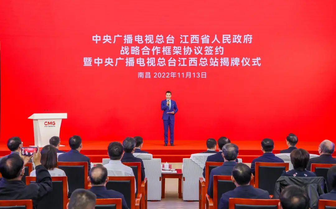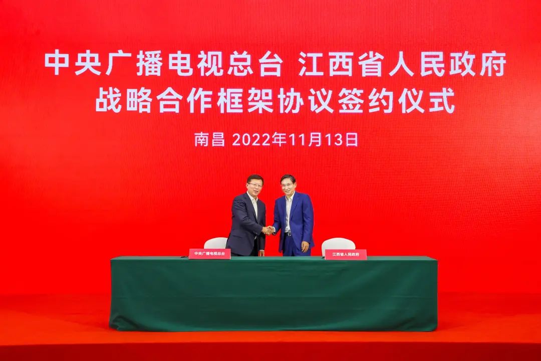 11月13日,中央广播电视总台与江西省人民政府举行战略合作框架协议签约仪式,中央广播电视总台江西总站同时揭牌。