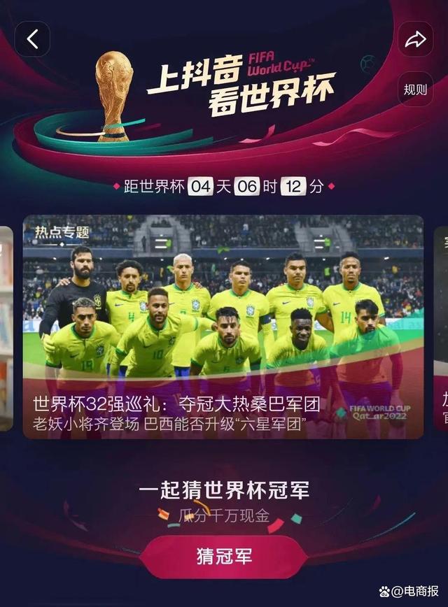 值得注意的是,抖音已经上线了“世界杯”专题页,抖音将带来全场次、4K超高清免费直播。除赛事转播外,还上线多种互动活动、解说节目等多重形式。