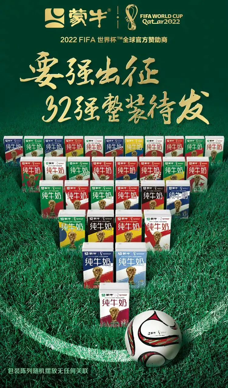 针对这一特殊机遇,蒙牛也重拳出击。品牌上新了世界杯参赛的32国国旗的定制包装,同时推出了一支《要强出征》大片,短片将各个国家队队长身上永不服输的意志与蒙牛的要强精神深度绑定,极大丰富了品牌价值内涵,也进一步彰显出品牌的国际化地位。