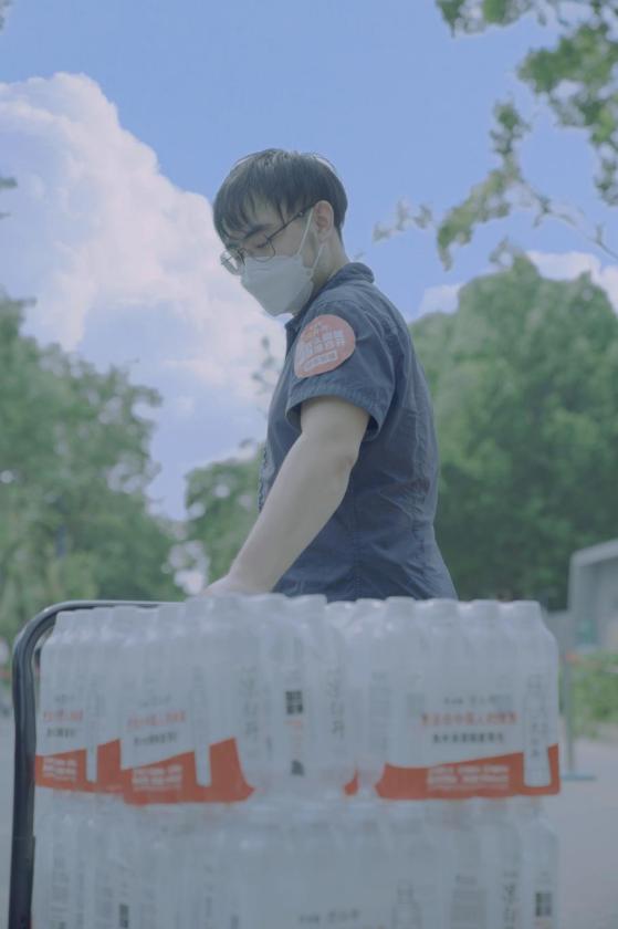为防疫站点送水,汪奇已经坚持了一段时间。今年4月以来,北京疫情形势再度严峻,今麦郎饮品发起了面向一线抗疫人员的饮用水捐赠活动,并招募志愿者共同参与其中。汪奇就是其中的一名志愿者,他是联络员、又是送水司机、还是装卸工人,每天都要带着四五件换洗衣服跑几个社区,完成少则十几次多则几十次的装车卸货,满足更多防疫站工作人员的饮水需求。
